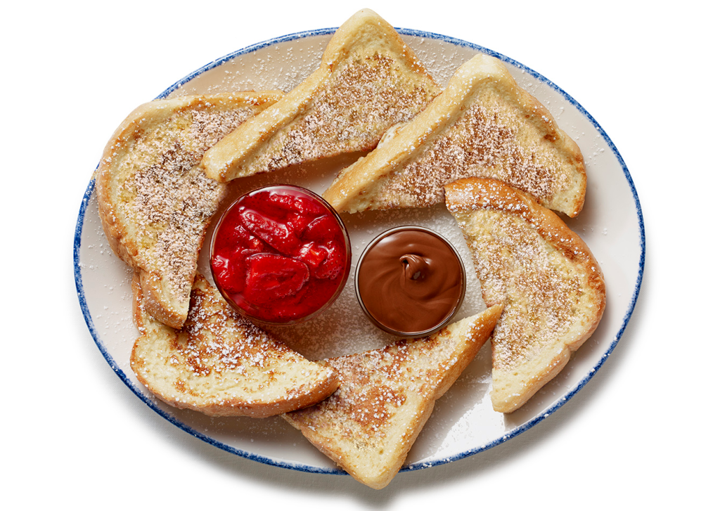 Nutella, your choice of fruit topping, dusted with icing sugar and made with Cobs Cinnamon Bread.